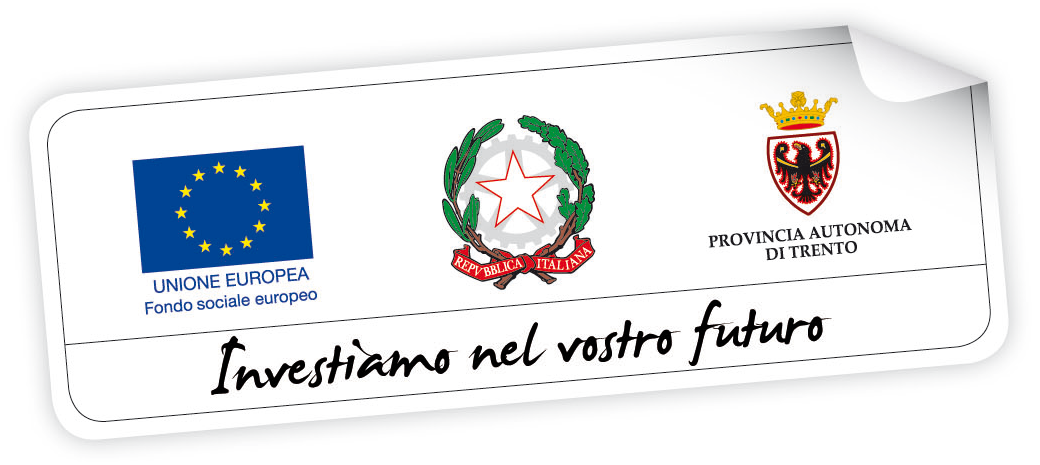 Questa iniziativa è realizzata nell'ambito del Programma operativo FSE 2014 – 2020 della Provincia autonoma di Trento grazie al sostegno finanziario del Fondo sociale europeo, dello Stato italiano e della Provincia autonoma di Trento.