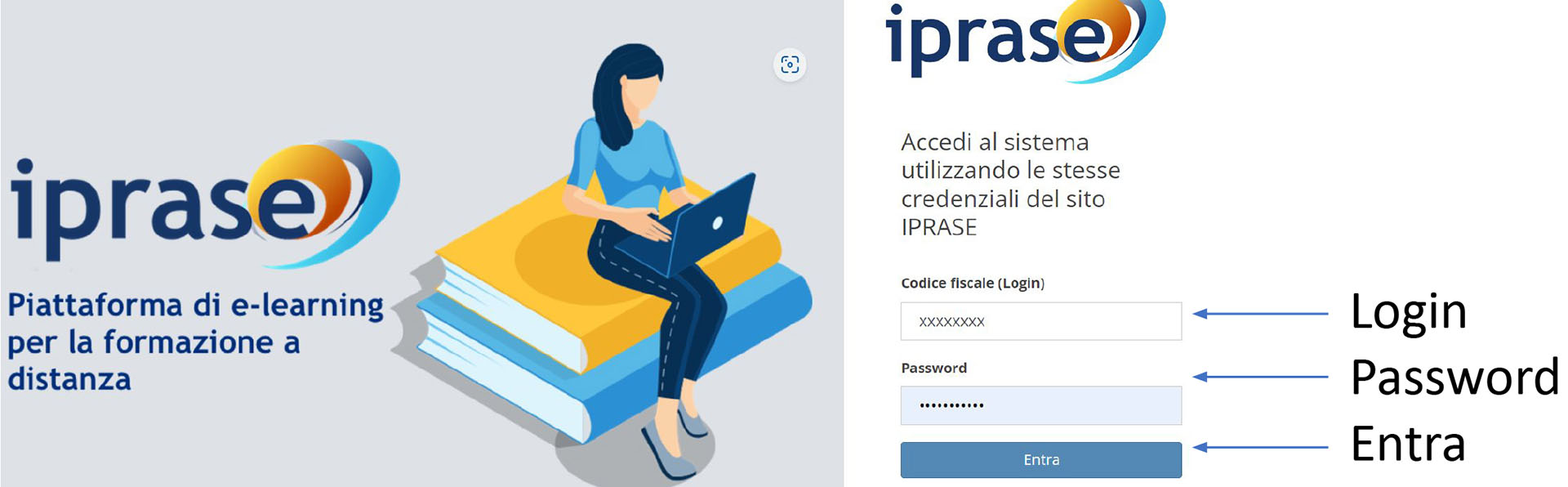 1. Per recuperare le registrazioni di tutti i webinar che abbiamo realizzato, come prima cosa bisogna accedere alla piattaforma Iprase di e-learning, che è possibile trovare a questo link: https://iprase.elearning-center.it/.